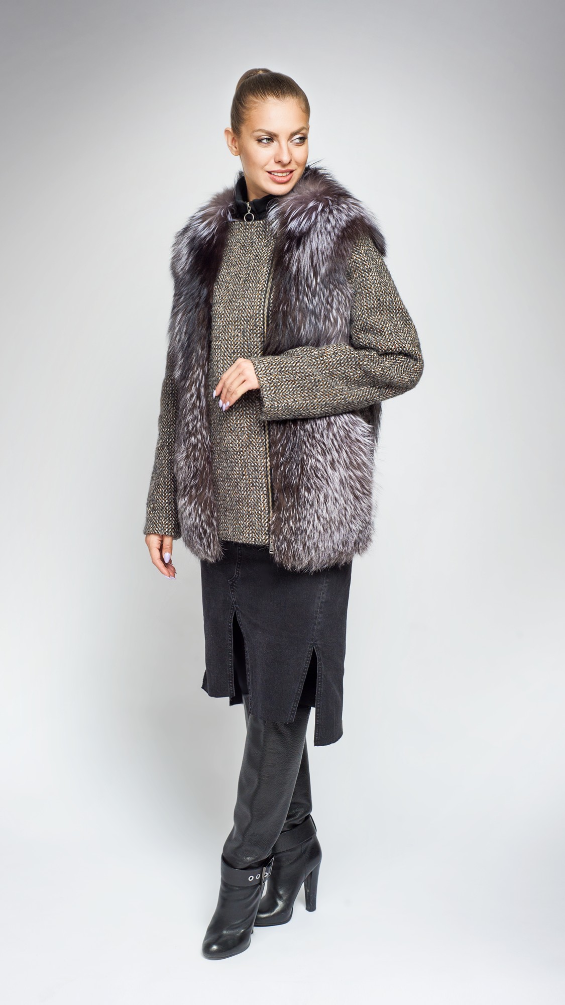 Жакет из меха чернобурой лисы