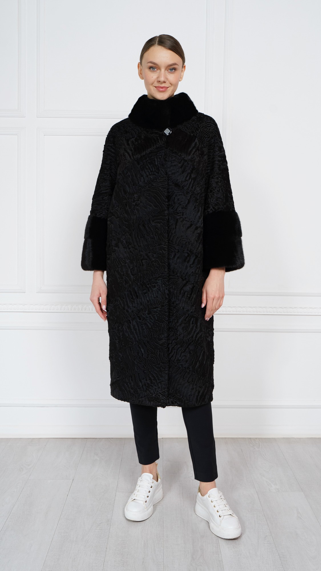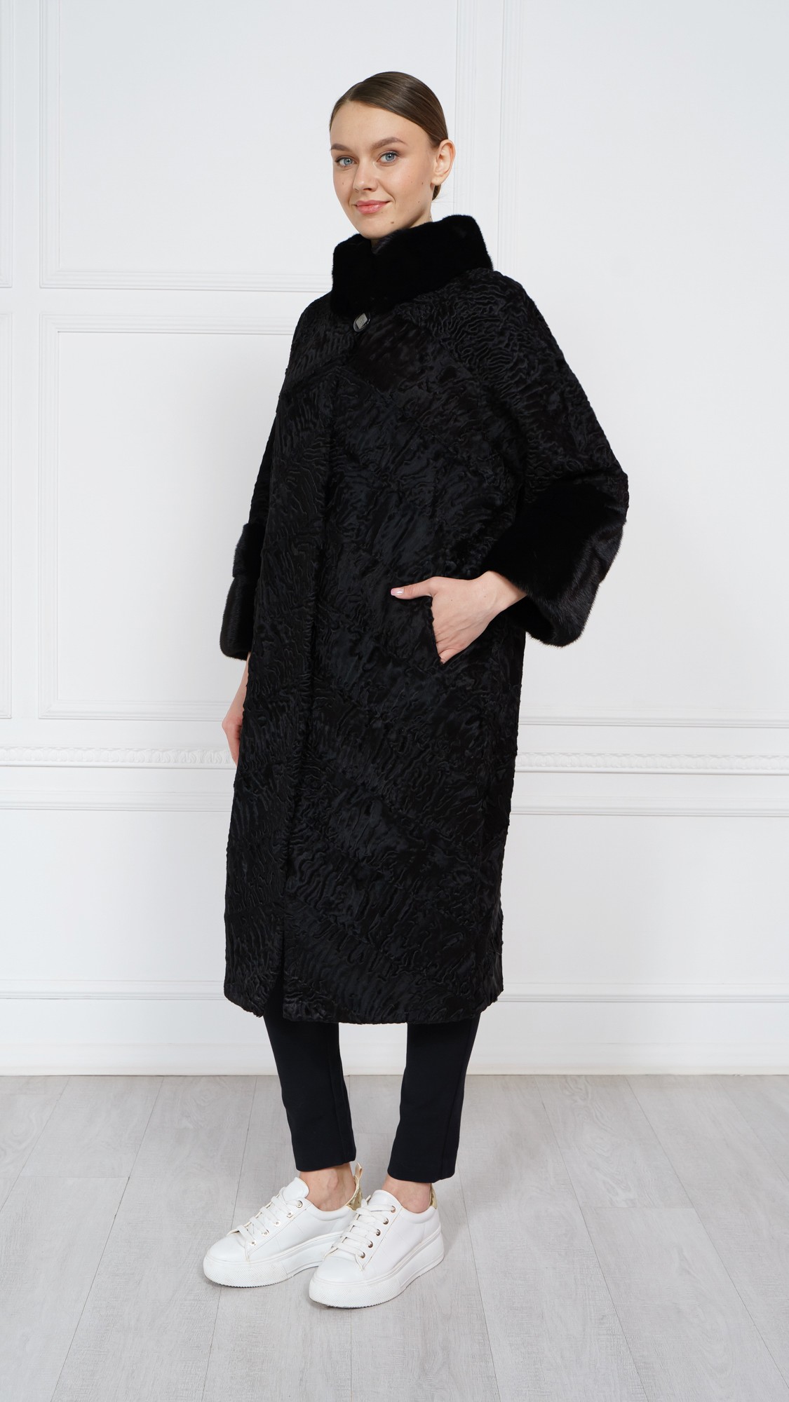 Шуба из свакары, отделка норка